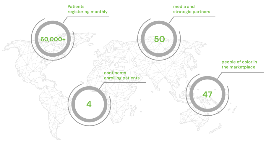 OutcomePatient’s delivers immediate access to tens of millions of registered patients, each interested in new care options. Every month, over 60,000 new patients join our marketplace through a diverse network of sources: An exclusive media network with over 50 strategic partners, a referral network driven by healthcare professionals, dozens of official patient societies, and unmatched flexible digital marketing strategies.